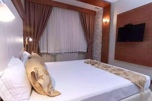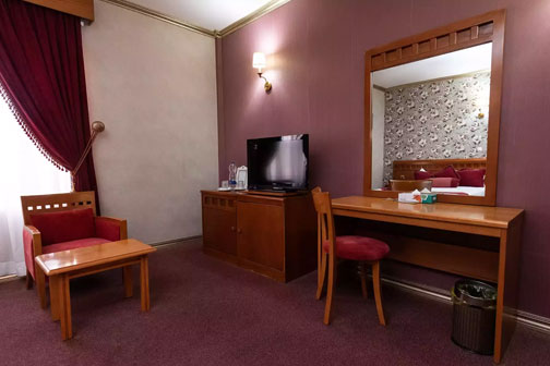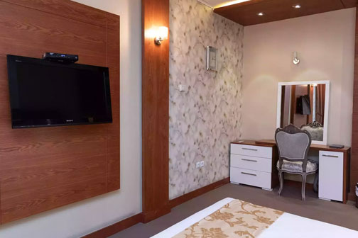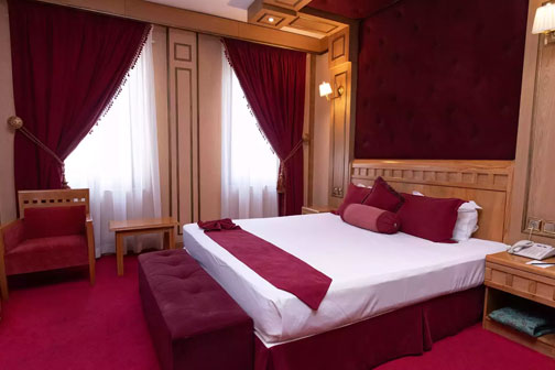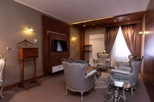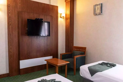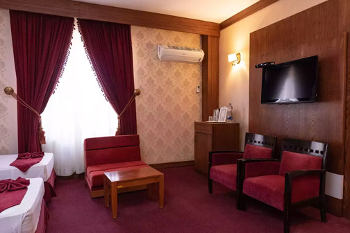 امکانات داخل اتاقها شامل: تلویزیون LCD، یخچال، اینترنت، سیستم تهویه مطبوع، سرویس بهداشتی ایرانی و فرنگی، مینیبار و صندوق امانات.